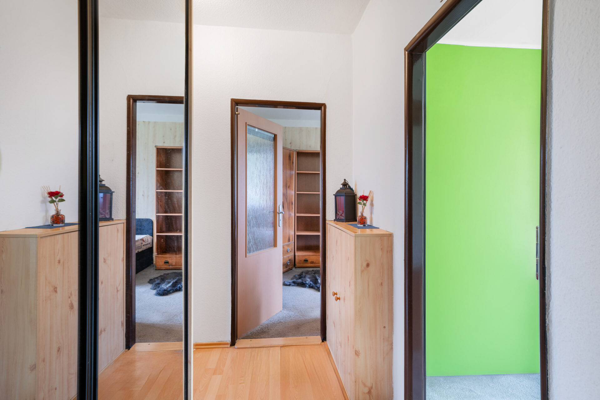 Kromě komory a skladu/šatny máte v chodbě i dvě šatní skříně, takže uložení věcí (ale třeba i kol nebo lyží) nebude problém. Do koupelny se vešla vana i pračka. V kuchyni je lednice s mrazákem, myčka, elektrická trouba a plynový sporák. Pokoje jsou na severozápad, obývák s kuchyní na jihovýchod. Byt je v přízemí, což ocení ti, kteří nemusí schody nebo výtah. V oknech jsou mříže, ale vypadají vkusně a rychle si na ně zvyknete.