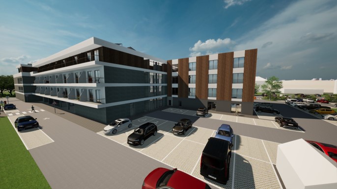 Projektem je bytový komplex s komerčními prostory (celkem 4 podlaží, možné realizovat jen 3 a bez “kina”, tzn. 55 bytů, v přízemí se službami a zdravotnickými zařízeními). SP se připravuje na plnohodnotnou variantu, jiné řešení je možné vyřešit změnou stavby před dokončením. V projektu jsou navrženy byty zvláštního určení (mají přísnější normy) vhodné kromě klasického bydlení pro např. senior house.